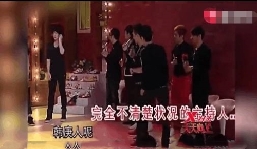 当时的人气偶像韩庚正在参加《天天向上》的录制,迟到一小时,进场后面带微笑向大家致歉。