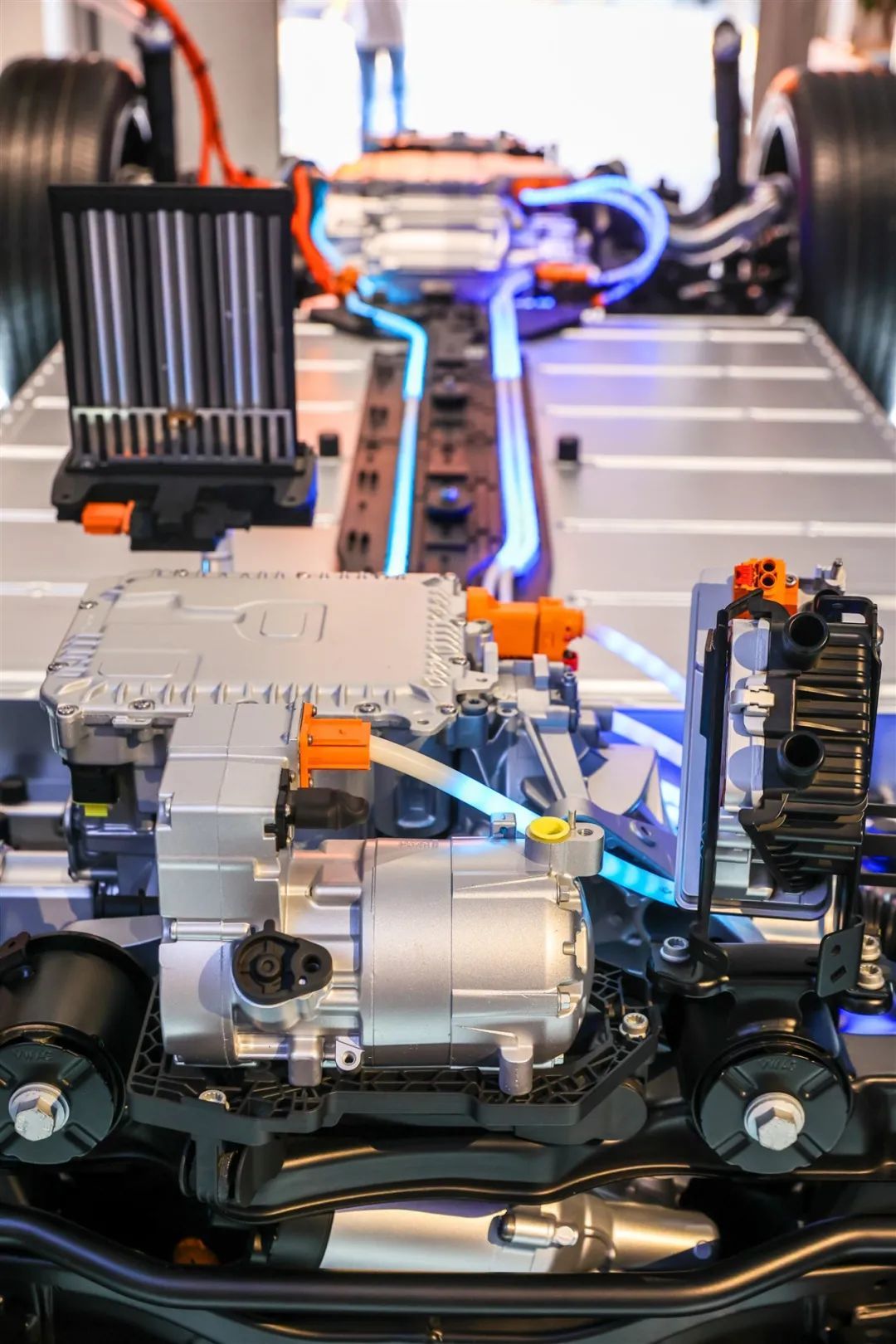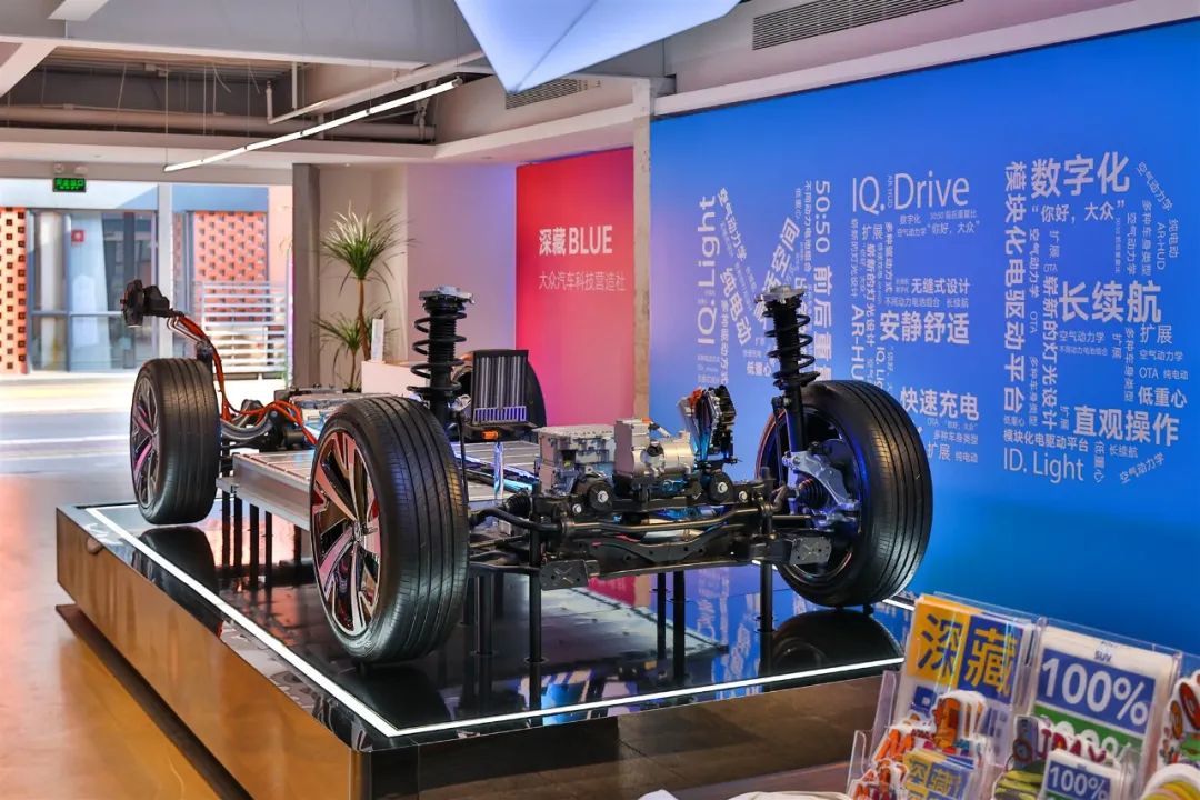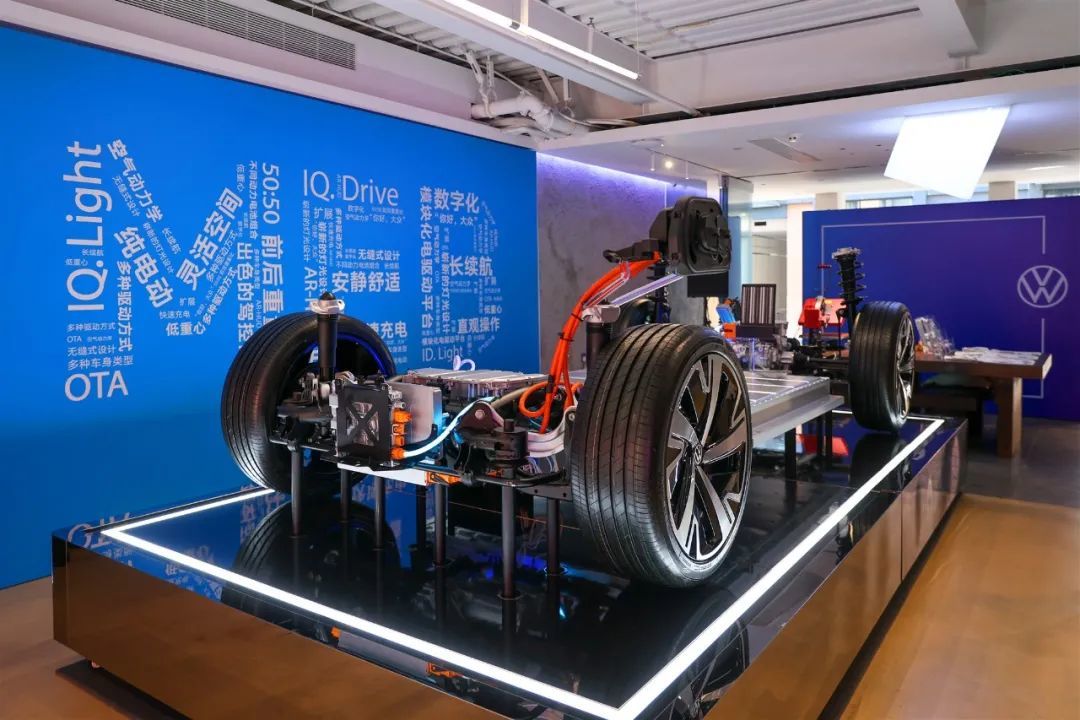 本次活动展出了ID.电动车的部分结构主体,大众ID.3采用了同级别中较为少见的后置电机+后轮驱动的布局,电机最大功率125kW,峰值扭矩310N.m。储能装置为容量为57.3kWh的三元锂电池,官方公布的综合工况续航约为430公里。该车国标慢充/快充接口位于车身右后侧,使用快充的话,从30%充到80%最快仅需28分钟。同时MEB平台的大众ID.系列车型都采用的是前麦弗逊悬架结构,悬架的下控制臂球头均采用了铝制材料,可以有效减轻簧下质量。