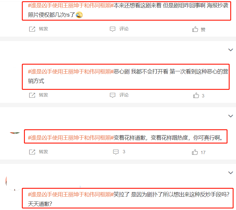 目前,该剧组还并未对王丽坤和于和伟道歉。但网友已经发现不对劲儿了,因为该剧开播后,获得的所有关注,似乎都是它在道歉。为海报抄袭道歉,又为用明星旧照道歉,大家对该剧剧情怎样的讨论很少,对该剧组骚操作的讨论倒是有一堆。