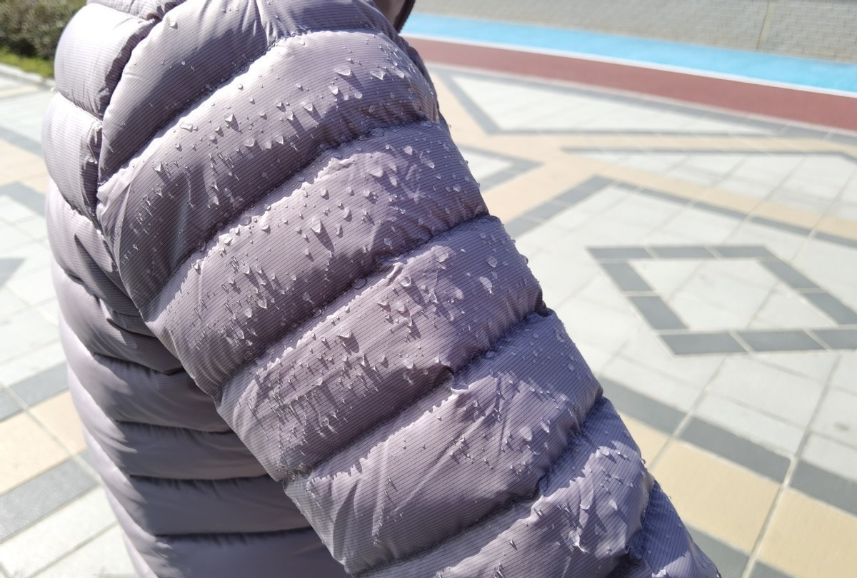 除此之外,诺诗兰超轻羽绒服还支持防水功能,它采用的是EXOTHERM®BEAD科技,能够有效的起到防泼水的功能,水滴在衣服表面都能自行快速拨离,从而减少水滴渗透衣服内造成浸湿,这一点不仅适合户外使用,像平时上下班也很适合。