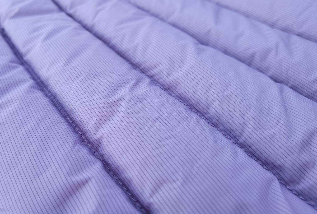 想要衡量一件羽绒服是否好坏,除了保暖效果之外,它的裁剪工艺这些细节也很重要。可以看到它的绗缝很均匀,这样能够有效地降低跑绒的几率。而且它的面料和内里采用的 是100%棉纶,值得一提的是这个面料还是采用了石墨烯超轻高密尼龙,具有抗静电功能,所以这种面料我还是很喜欢的,手感很顺滑,干燥的冬天也不会产生静电。另外衣服的填充物是白鹅绒,含量达到了90%,这含量还是很高的。