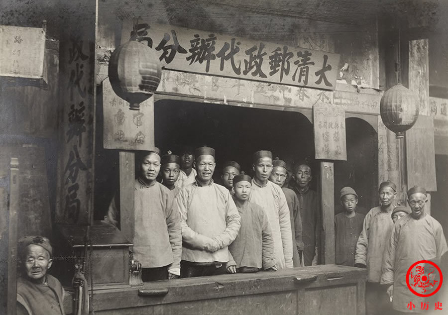 邮政是晚清推行新政过程中办起来的新事业,以取代传统的驿递系统。这一家新开不久的邮政局营业窗口两边挂了两块木牌,分别写着“官局重地”“禁止喧哗”,可见当时人们对邮政局的重视。
