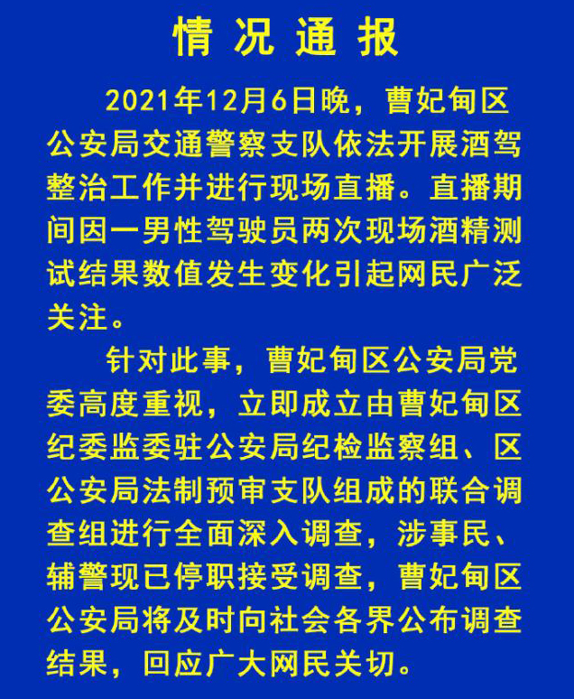 近一段时间以来,各地交警查酒驾的直播非常火,流量不输娱乐网红。可是河北唐山曹妃甸区的交警却在最近一次直播查酒驾时,意外地翻了车。他们在对一名开车的男子进行酒精测试的过程中,不仅两次检测的数值出现严重偏差,而后更是无视正在观看视频的几万名观众,直接就把直播给中断了。
