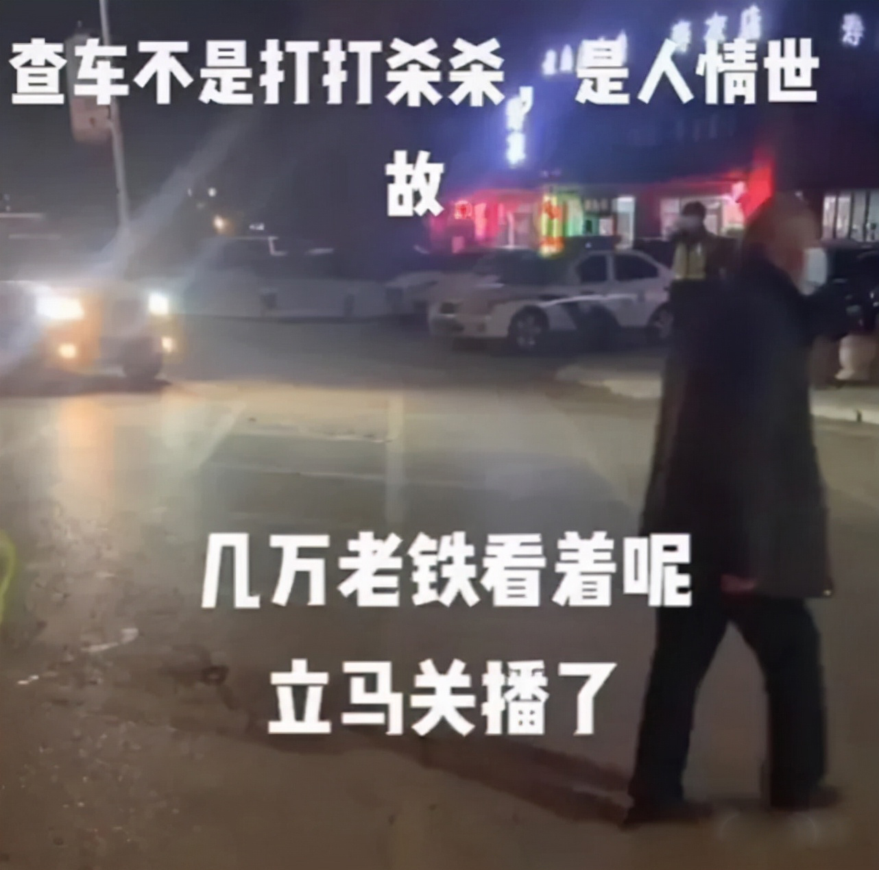 既然交警选择了直播的方式来进行酒驾检查,那么就应该全程坦荡地接受大众的监督,遮遮掩掩反而会在关键时刻掉链子。因此在网友的视频中除了“查车不是打打杀杀,是人情世故”的字样,还配有“几万老铁看着呢,立马关播”等字幕。