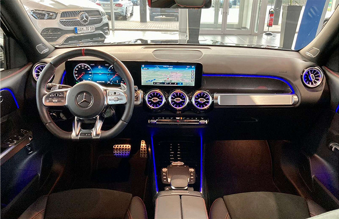 内饰方面,新车采用经典的贯穿式大屏幕,彰显出色的科技感和视觉效果。同时为了进一步营造运动氛围,新车在内饰上还运用了大面积翻毛皮材质和AMG系列专属平底式方向盘,并且保留了7座布局,兼顾了性能和实用性。