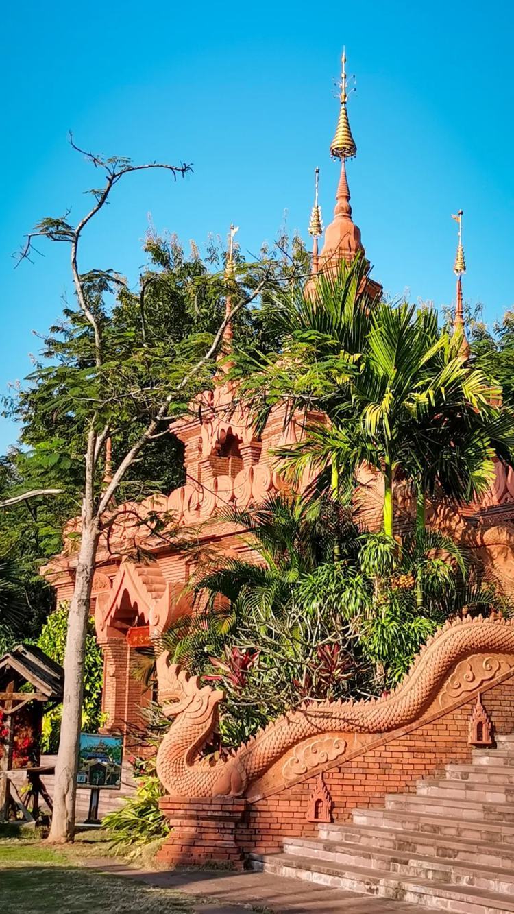 曼听公园曾是傣王的御花园,而总佛寺就是这位昔日的西双版纳最高统治者前来礼佛参拜的地方。朱红色的外墙配上金粉和银片等装饰,让整座佛寺大殿美如幻境,加之历史上这里曾是高僧辈出的高等级佛寺,因此总佛寺在整个东南亚都颇具盛名,被誉为“佛寺之首”。