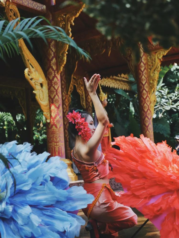 在夜市上吃饱喝足后,还可以挤进观众席,看一场集杂技、舞蹈、柔术于一体,号称世界四大名秀之一的傣秀;或者伴着欢快的傣族音乐,跟随热情的舞者踩点律动,蹦一场颇具民族风情的傣迪。