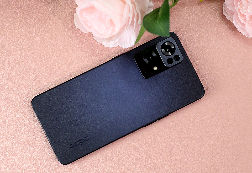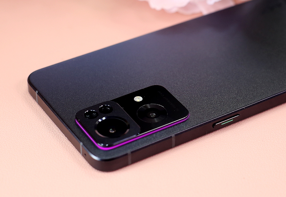 后置摄像头位置带有微凸设计,整齐划一的感觉十分统一,后置拍摄模块内置了三颗镜头,分别是索尼IMX766大底5000万像素主摄、800万像素超广角镜头以及200万像素微距镜头。在凸起的摄像头位置的侧边是OPPO首创的光纤热弯星环呼吸灯,在打电话、通知或者充电时,环形呼吸灯就会配合亮起,显得十分酷炫。