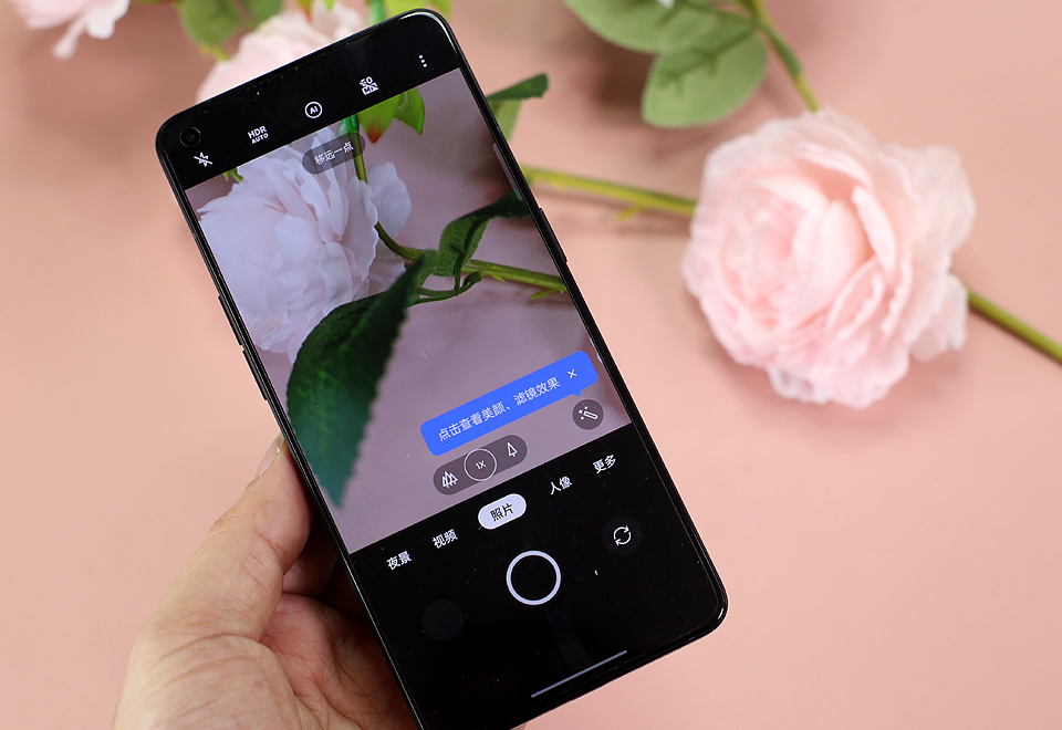 在拍照方面具有月光夜景算法、LiveHDR 算法、人像虚化以及硬件级 DOL-HDR,动态范围可提升 200%。人像拍摄中也加入了情绪滤镜、光斑人像、多景同录、一键智能成片、AI 视频美妆、AI 焕采美颜 2.0、闪速抓拍、视频超级防抖等一系列贴心功能。