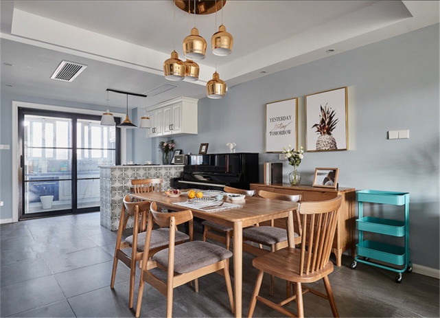 餐厅的装修就是要营造良好的用餐范围,所以风格一定要掌握好,无论是田园风还是现代简约范,对餐桌椅的风格和材质一定要把握好。色彩上可以选择能够提高用餐情绪和氛围的暖色系。灯光的设计也要淡雅柔和,这样一来才会有浪漫的情调哦。