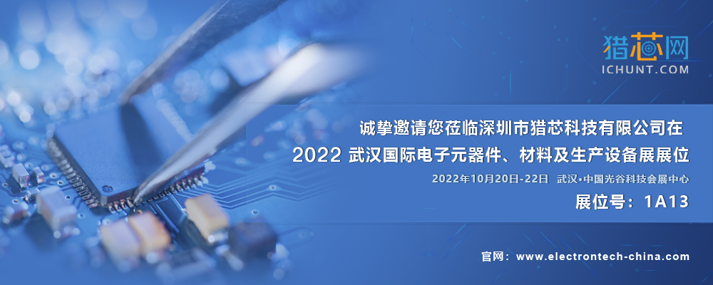 作为行业领先的全球电子元器件一站式智慧采购平台,猎芯科技将参加于 10月20日——22日在武汉举办的2022武汉国际电子元器件、材料及生产设备展览会(Electrontech China)。
