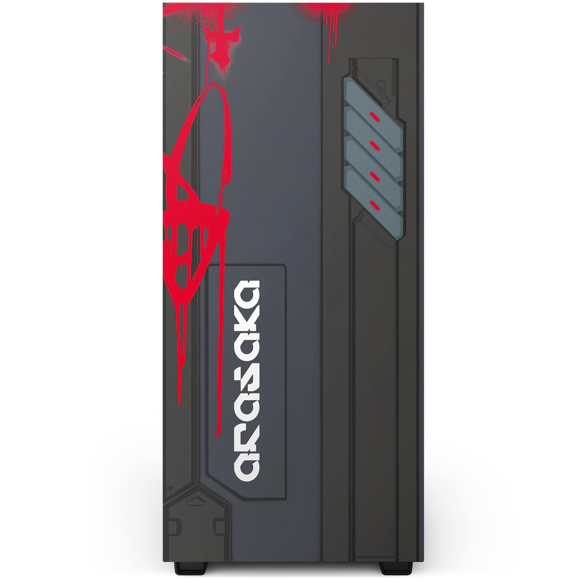 这款机箱侧面有着进风孔,钢化玻璃面板的固定梢有着赛博朋克挂牌。这一挂牌同样为限量版。