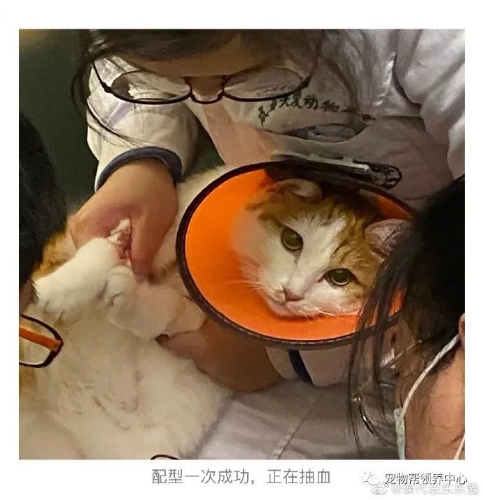 61配型之后发现和那只需要救助的小猫咪匹配,然后就开始献血。