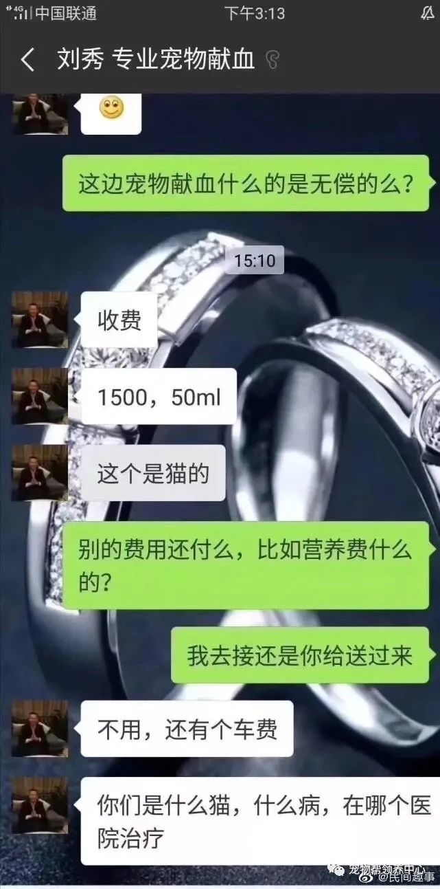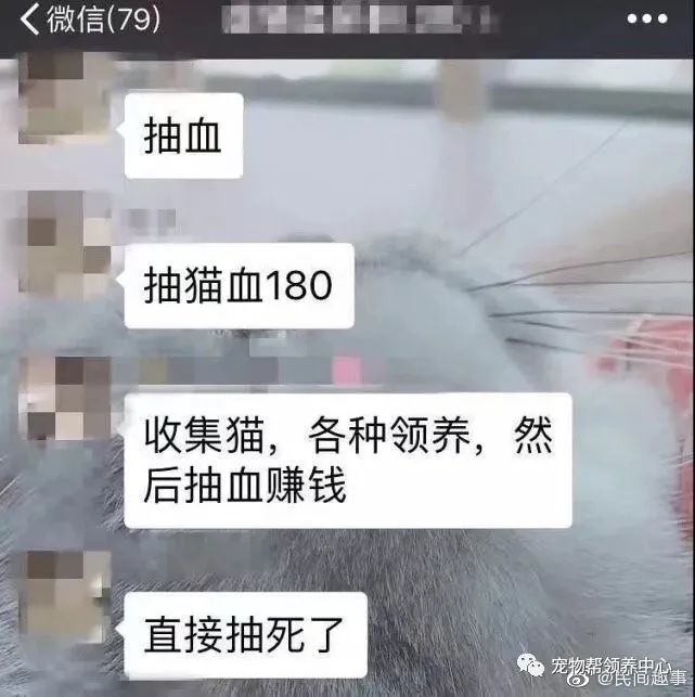 除了宠物医院外,还有一些猫贩子,专门做着卖猫血的生意。