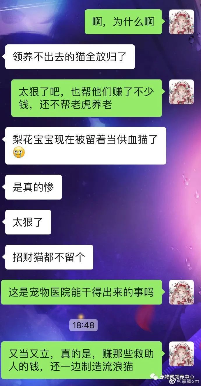 至于那些没有人性的宠物医院和猫贩子,只能希望有一天会有相应的法律出来,来治理这些乱象。