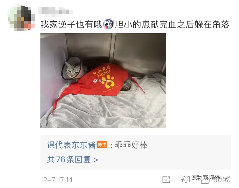 看了这个帖子之后,也有网友分享自己家猫咪献血的故事,晒出猫猫的献血证。