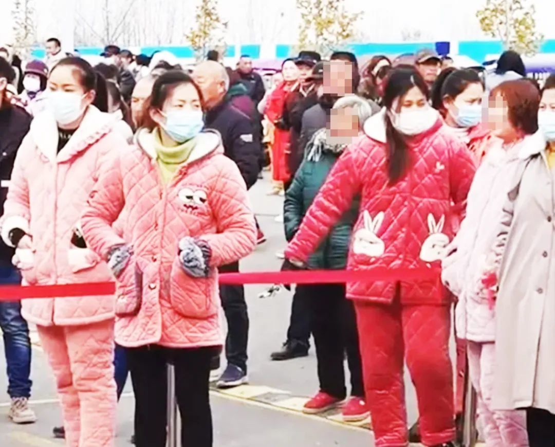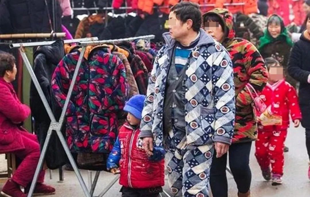 这些在大冬天出门营生的南方人,不约而同穿上了棉睡衣。