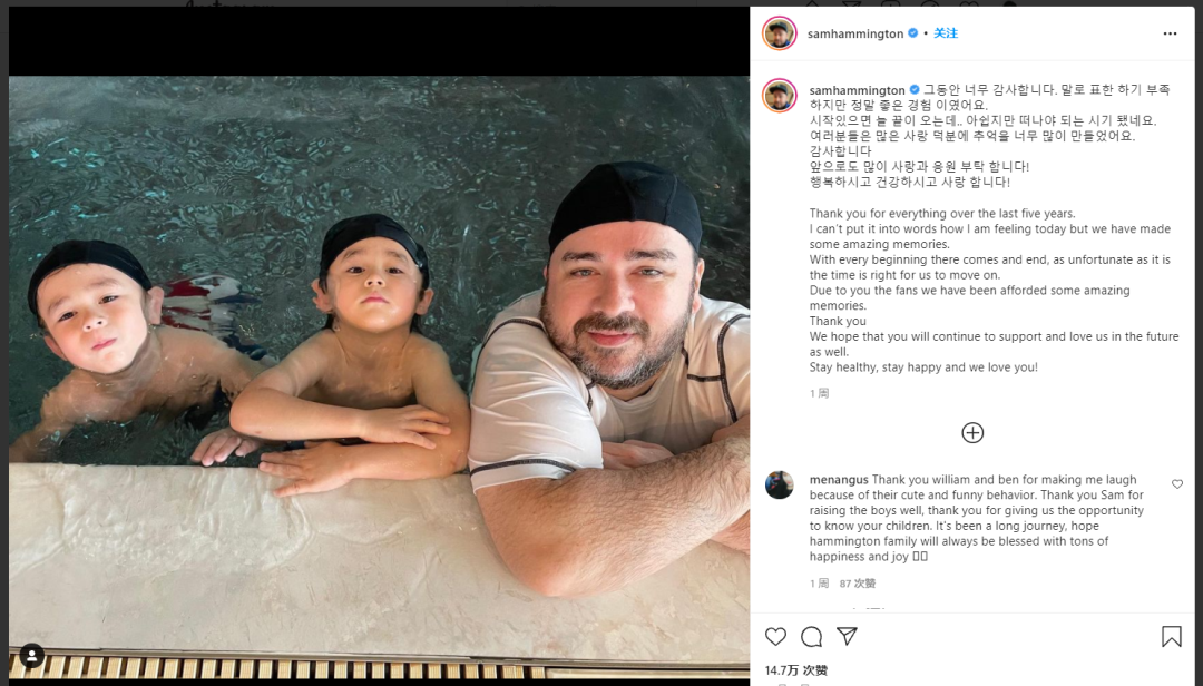 据韩媒报道,Sam爸爸和威本兄弟已经完成了《超回》的最后一次录制。