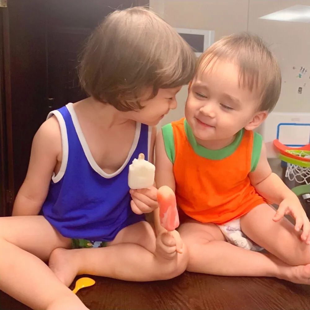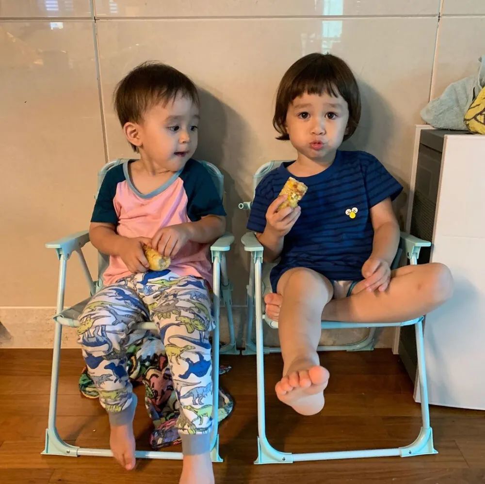 毫不吝啬对本特利的夸奖,日常把 “阿嘎好棒,阿嘎做得好哦” 挂在嘴边。(阿嘎是宝宝的意思)