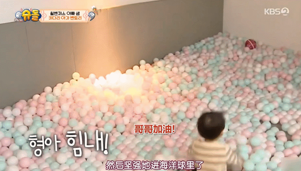 本特利直接把自己的裤子脱下来给威廉,自己跑到海洋球里躲起来。