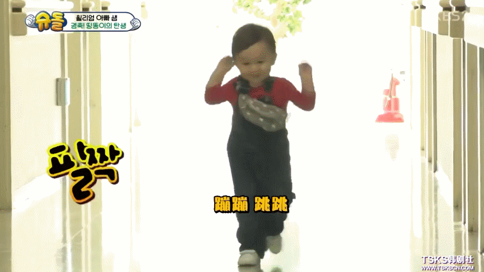 还记得那天Sam爸爸去陪产,小奶威独自一个人在产房外等待,听到哭声蹦蹦跳跳地奔向弟弟。