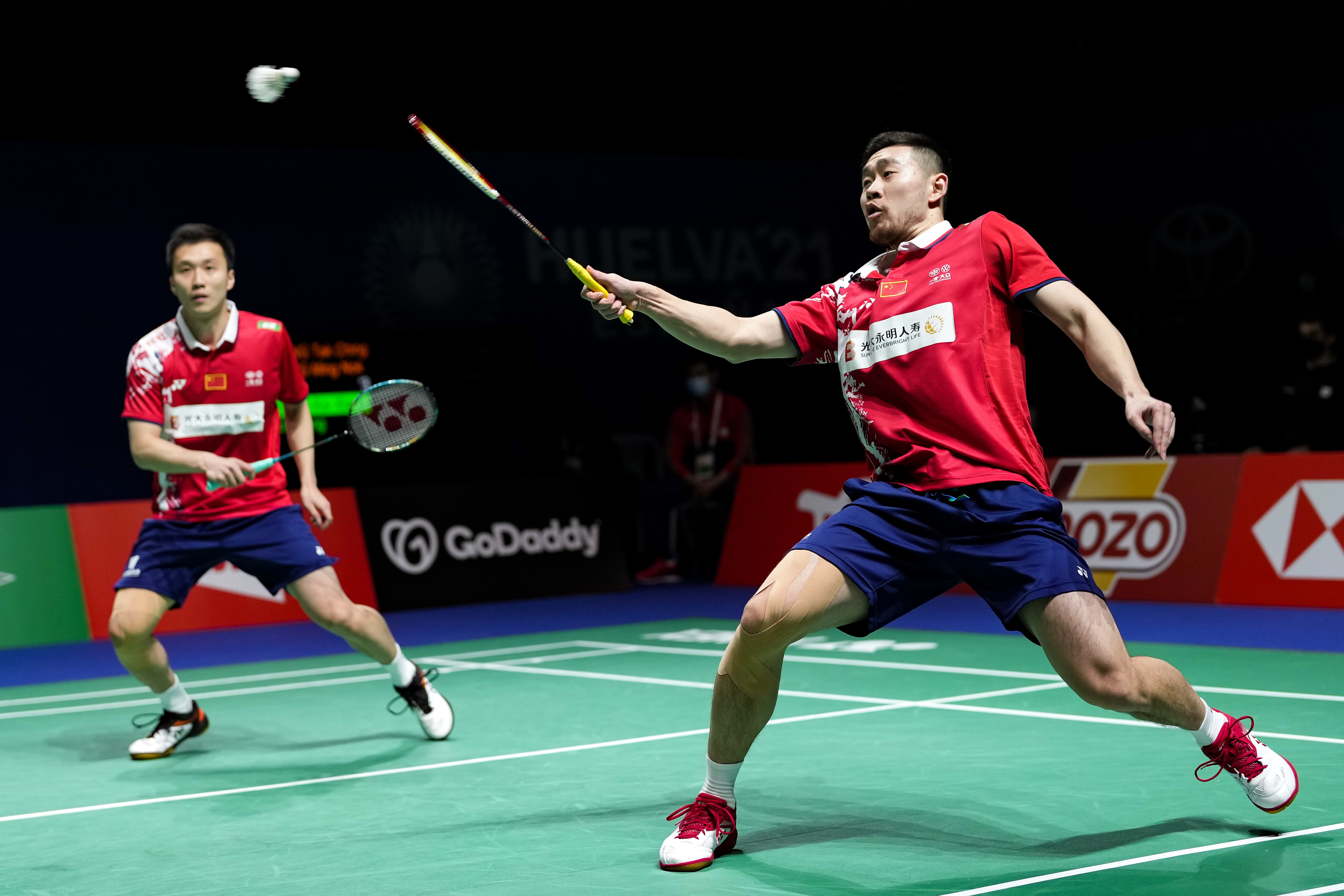 当日,在西班牙韦尔瓦举行的2021年世界羽毛球锦标赛男子双打首轮比赛中,中国组合刘成/黄凯祥以2比0战胜中国香港组合张德正/杨铭诺,晋级下一轮。