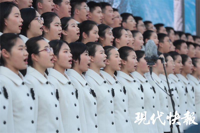 现代快报讯 “巍巍金陵,滔滔大江,钟山花雨,千秋芬芳……”2021年12月13日,是第八个南京大屠杀死难者国家公祭日。当天上午,国家公祭仪式在侵华日军南京大屠杀遇难同胞纪念馆(简称江东门纪念馆)举行。南京市中华中学84名学生在国家公祭仪式上朗诵《和平宣言》,饱含深情、铿锵有力的朗诵声响彻集会广场,他们代表南京青少年向世界发出和平祈愿。