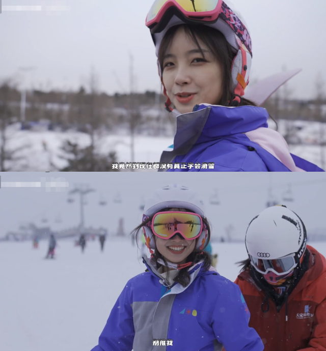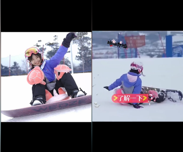 王冰冰头戴护目镜,身穿一件紫色防风的滑雪服,两条腿膝盖上都绑着小乌龟形状的护膝,感觉她专业之余还非常可爱。王冰冰脚踏着滑板,刚准备滑动时,她一不小心就屁股坐在雪地里,见自己出丑后王冰冰还坐在地上傻乐着,而前面自己信誓旦旦的话很快被“打脸”。