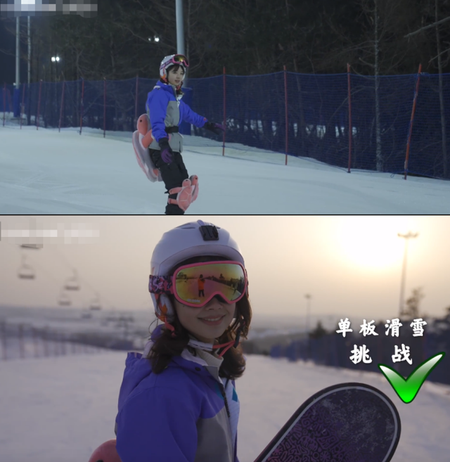 王冰冰面对滑雪时的多次失败,她没有气馁而是面着镜头说道;“已经练习一天加上一晚,明天继续”。在黄昏的时候,王冰冰轻松地滑下雪山脚,她单板滑雪终于成功,功夫不负有心人。