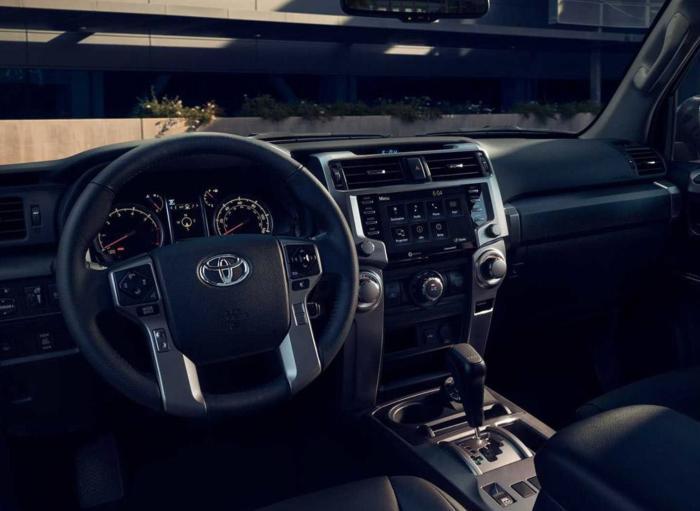 内饰方面,新车采用带有灰色缝线的SofTex人造皮革取代了传统布质座椅,并具备加热功能,向豪车方向靠拢,舒适感有了很大提升。用料上,它采用了大面积软性材质的铺陈,还加入了抛光处理的枣红色实木装饰板点缀,散发着古色古香。大量银色镀铬元素的点缀,让它更有金属质感。指针仪表和彩色行车电脑显示屏以及8英寸的内嵌式中控大屏,还搭载了全新一代TSS智行安全套装。配置上,无钥匙进入、一键启动、8探头驻车雷达,倒车影像、电动调节真皮座椅、双区自动空调、普通天窗/全景天窗、9扬声器的JBL音响系统、可调光式全景天、车内氛围灯、感应式雨刮器、电源插座、可电动调节座椅,配置向大哥陆巡靠拢