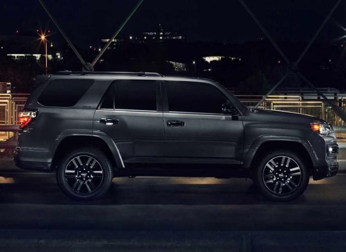 丰田4Runner(超霸),它对于国人来说也并不陌生,它是普拉多的兄弟车型,在国内也可以通过平行进口的方式购买。而此次发布的新款4Runner TRD Sport,它采用了更多专属的设计元素,车头加入了带有掏空式设计的引擎盖,标志性的梯形前拱搭配着菱形镂空式中网和横幅式装饰条,两侧粗犷的大灯和下方圆形的雾灯,粗犷的前包围和棱角分明的线条,很有北美硬派SUV的范儿。车身采用大量平直的线条,还配备了梯形的轮拱、TRD Sport身份徽标以及深灰色的20英寸铝合金轮圈。车尾造型方正,与兰德酷路泽有着异曲同工之妙,很有厚重感。车顶行李架也采用亮黑色装点,当然前后保险杠同样使用类似的点缀,以彰显其身份