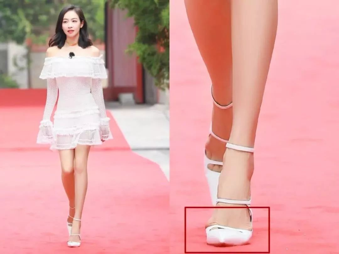 女星在高跟鞋上受的苦,也不止高跟这一条。宋茜因为常年练舞,导致脚指变形,所以很少穿一字带的高跟鞋,一般都是穿尖头细跟鞋。