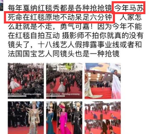抢镜除了大张旗鼓整活的,还有不动声色赖红毯的。撑死2分钟就能走完的戛纳红毯,当年马苏硬是逗留了6分钟。