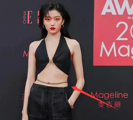 她在当天下午拍的视频里还是小蛮腰,结果红毯延迟6小时,中间可能吃了些东西,腰侧就出现了小赘肉,使造型大打折扣。