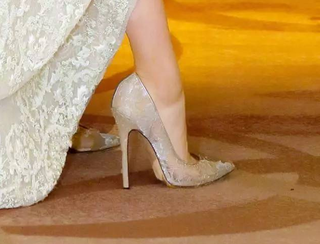 15cm的高跟是什么概念呢,一般女星的脚长都在23cm左右(37的脚),要稳稳hold住15cm的鞋,几乎要将脚掌与脚背折成90°。