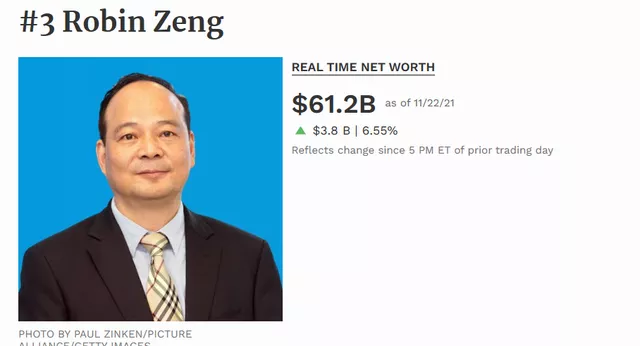 市值的飞升之下,宁德时代掌舵人曾毓群的身价也水涨船高。根据福布斯的数据,截至11月22日,曾毓群个人身家达612亿美元,位列中国富豪榜第二名、中国香港富豪榜第一名、全球富豪榜第22名。