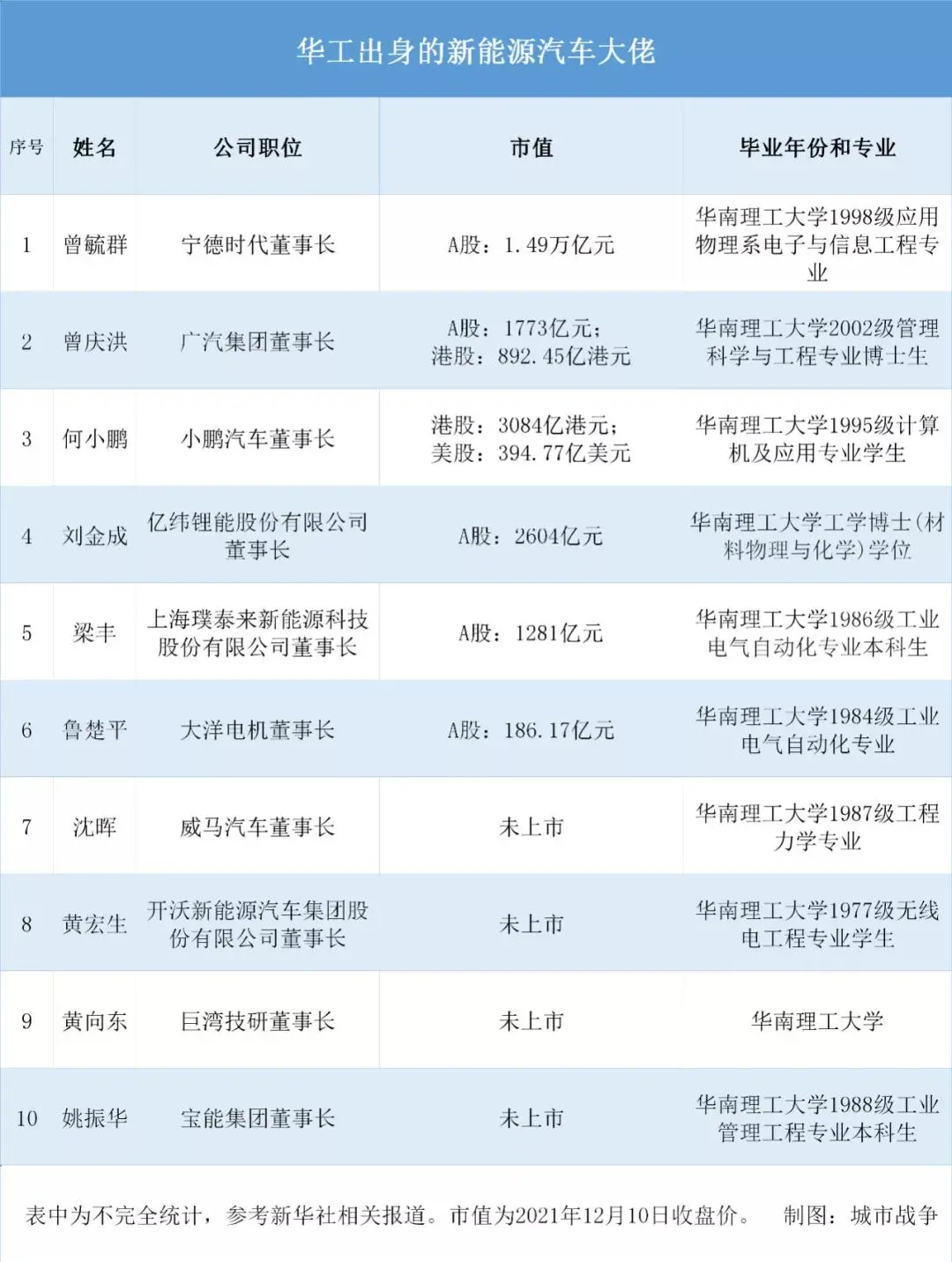 一长串的名字背后,华南理工大学的校友差不多占据了新能源汽车企业负责人的半壁江山。