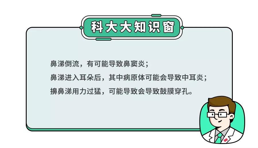 最后,科大大再絮絮叨:如果娃鼻涕严重,还出现持续性的鼻塞、呼吸困难等其他不适症状,一定及时带去医院检查!