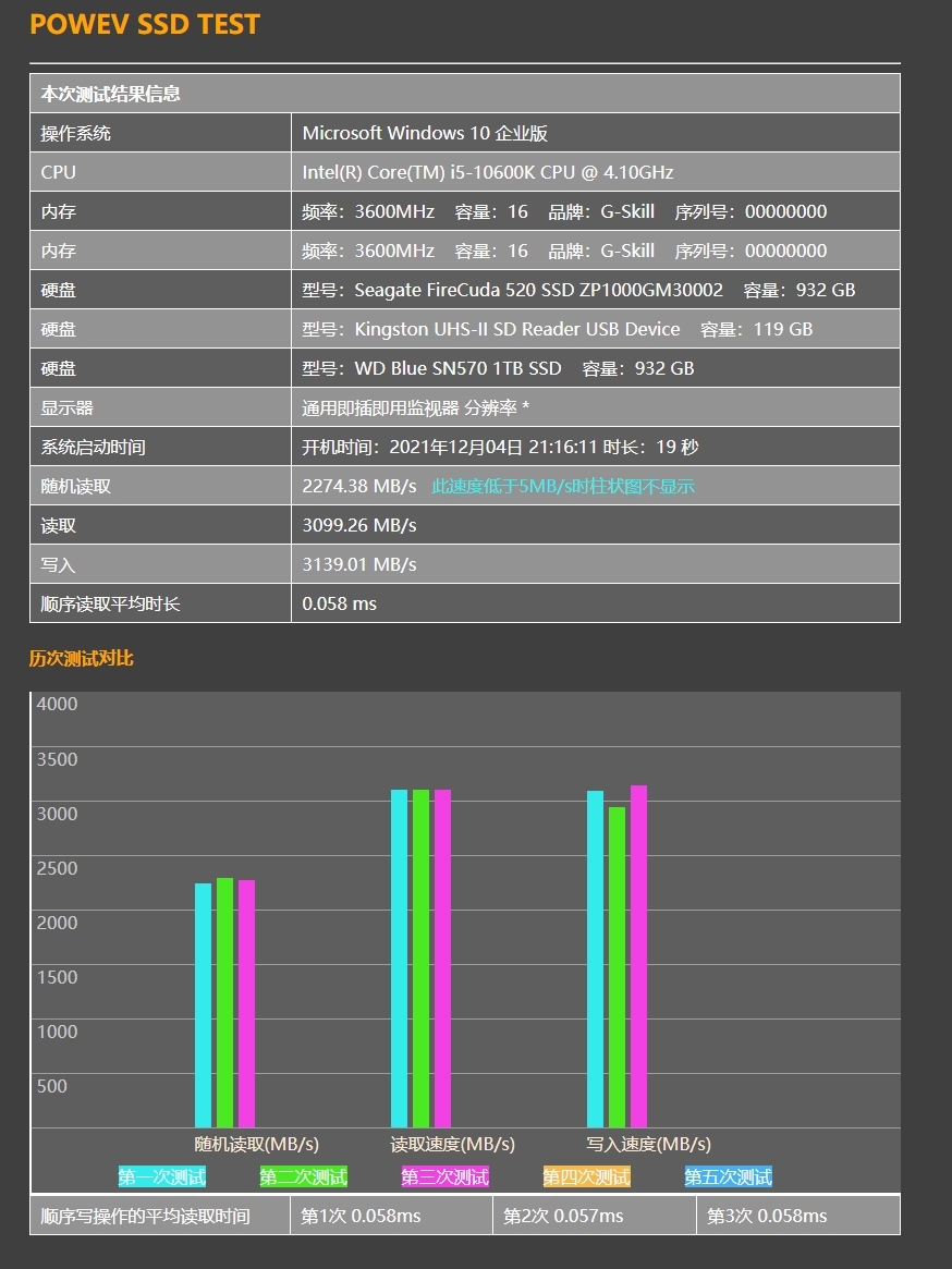 通过多个不同测试软件测试,可以看出WD Blue SN570固态硬盘的综合整体性能表现是非常不错的。