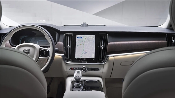 沃尔沃S90的内饰同样极具特点,继承进口版的设计以及高水准的用料。大量手感细致的木纹和真皮包裹不会给人一丝浮夸的感觉,展现了来自北欧家一般的豪华风格。同时,来自仪表和中控的两块大尺寸液晶屏大大提升了整车的科技氛围。另外,主/副驾驶座安全气囊、前排侧气囊、前/后排头部气囊、胎压预警、儿童座椅接口、ABS防抱死、制动力分配、刹车辅助、牵引力控制、车身稳定控制、车道偏离预警系统、车道保持辅助系统、主动刹车/主动安全系统、疲劳驾驶提示、前/后驻车雷达、倒车影像、自适应巡航、发动机启停、自动驻车、上坡辅助、可开启全景天窗、无钥匙启动、真皮方向盘、多功能方向盘、皮质座椅、主/副座椅电动调节、主驾驶位电动座椅记忆、LED远近光灯、自动头灯等配置一应俱全,既展示出沃尔沃作为豪华品牌的内饰风格又体现出其人性化的智能安全配置保护,科技智能与人性关怀合二为一。