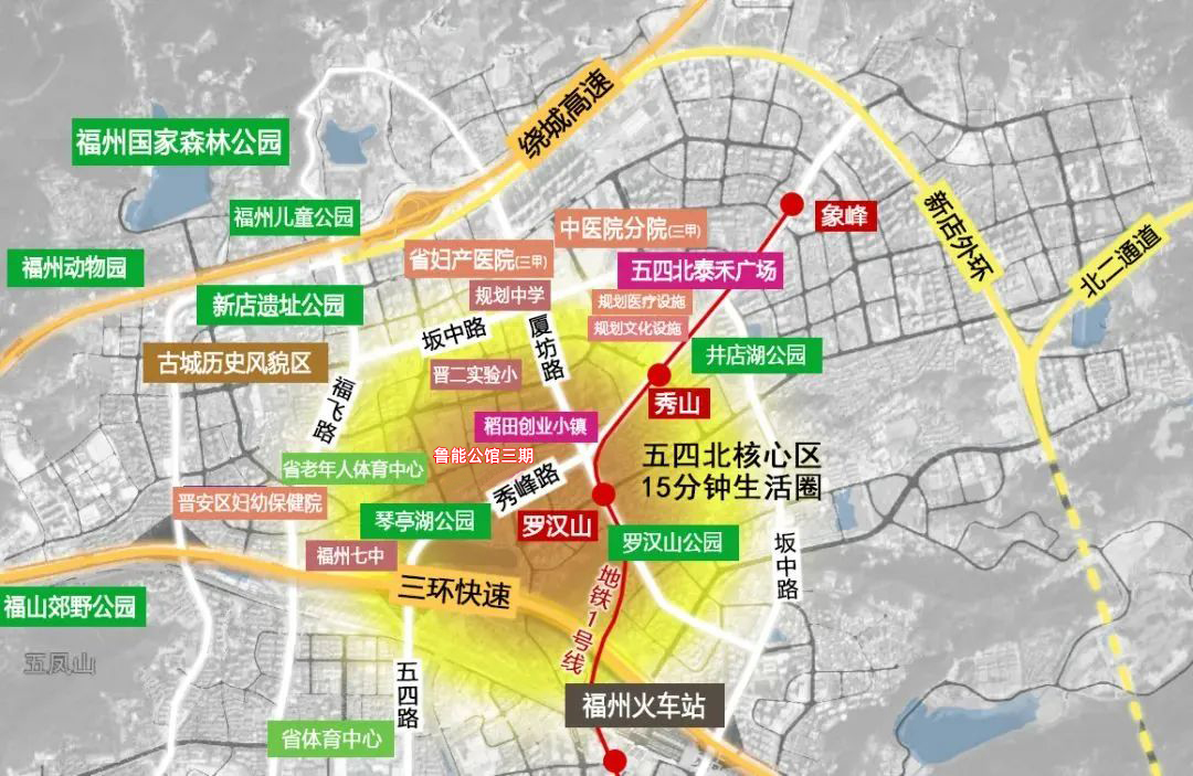 鲁能公馆三期位于五四北板块。该板块是福州老城核心区外溢最早受益者,板块生活配套完善。在交通出行方面有地铁1号线、琴亭湖高架、新店外环路等;在生活配套方面有五四北泰禾广场、晋安实验小学、福建省妇产医院等,整体的宜居属性正不断提升。对于工作在鼓楼省府圈、五四路的购房者而言,是一项不错的选择。