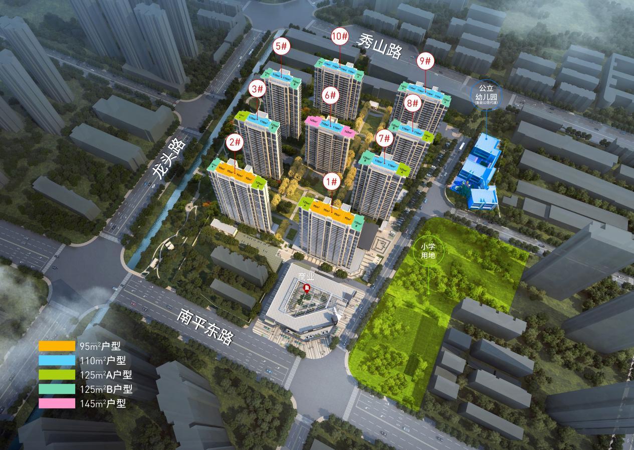 在户型方面,有95㎡、110㎡、125㎡(双户型)、145㎡户型,每个户型皆为三面宽朝南,所有房间均能自然通风采光。满足刚需、刚改、改善等人群的居住需求。