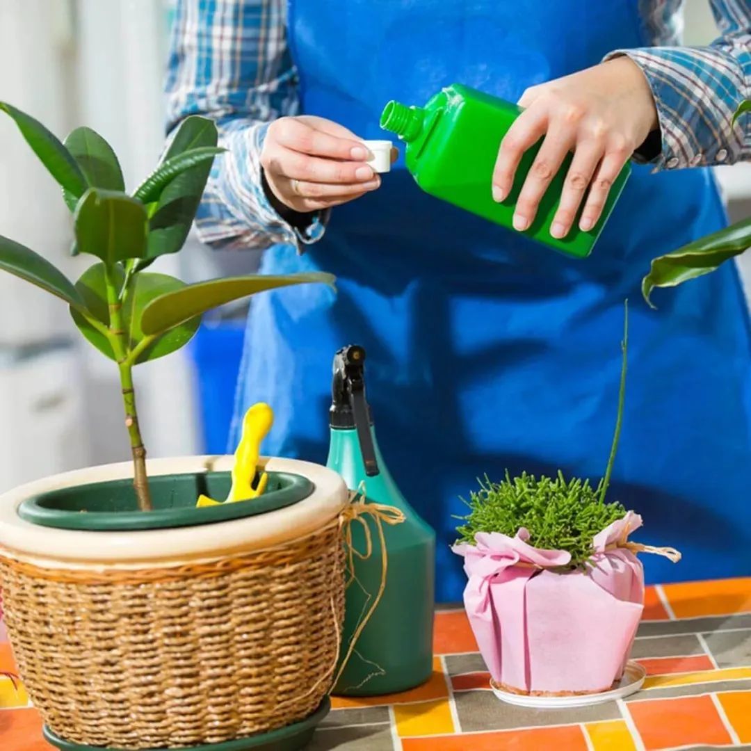 植物生长季节就用通用型的水溶性肥料,在室内施肥的时候浓度说明书上的一半。就比如,说明书上建议用1000倍的浓度,那我就用2000倍的浓度给室内植物施肥。