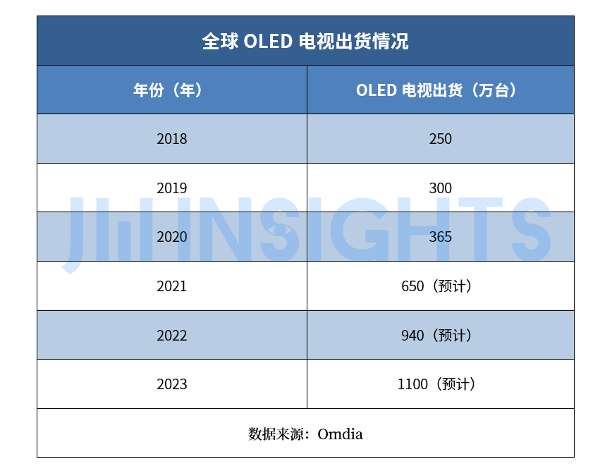 1、集微咨询:三星加入,OLED电视面板出货将提前突破1000万片