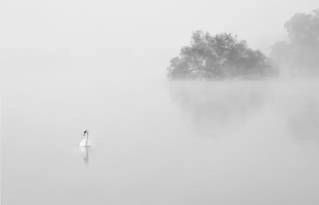 雾景是高调作品,以白色和淡灰为主。所以一定要有少些的、但有“重量”的黑色景物压住画面,否则,照片会因缺少力度而失败。