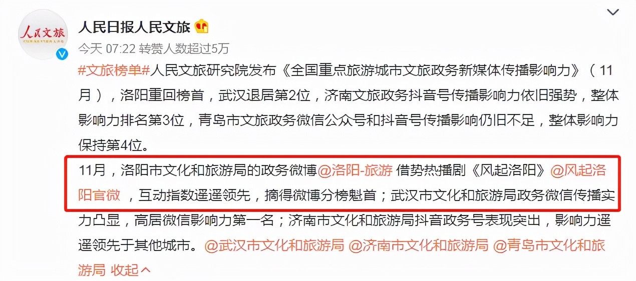 王一博本身也是洛阳人,还担任着洛阳文化旅游形象大使身份,《风起洛阳》选择他来出演“百里弘毅”这一重要角色,也有很大一部分是为了宣传推广洛阳。《风起洛阳》的热播也确实对洛阳的传播影响力起到了促进作用。