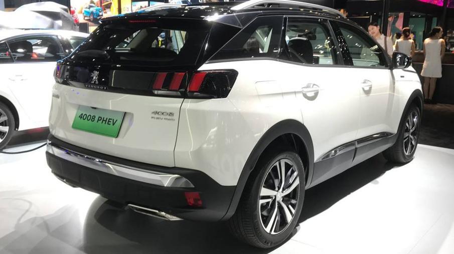 车身侧面,凌厉的线条由车头贯穿至车尾,间断式的腰线营造出强烈的肌肉感,并且营造出修长身姿。此外,车身采用双色设计,但上下两条镀铬装饰条勾勒出了车身的造型。18英寸的双色五辐轮圈同样具有设计感和力量感。车尾则采用了标致家族式的利爪状尾灯设计,而且尾灯组之间由黑色高亮饰条进行连接,中央同样镶嵌着标致的 LOGO。和普通4008最明显的区别是,PHEV 车型两侧的后翼子板都有开口,一侧是加油口,另一侧则是充电口。