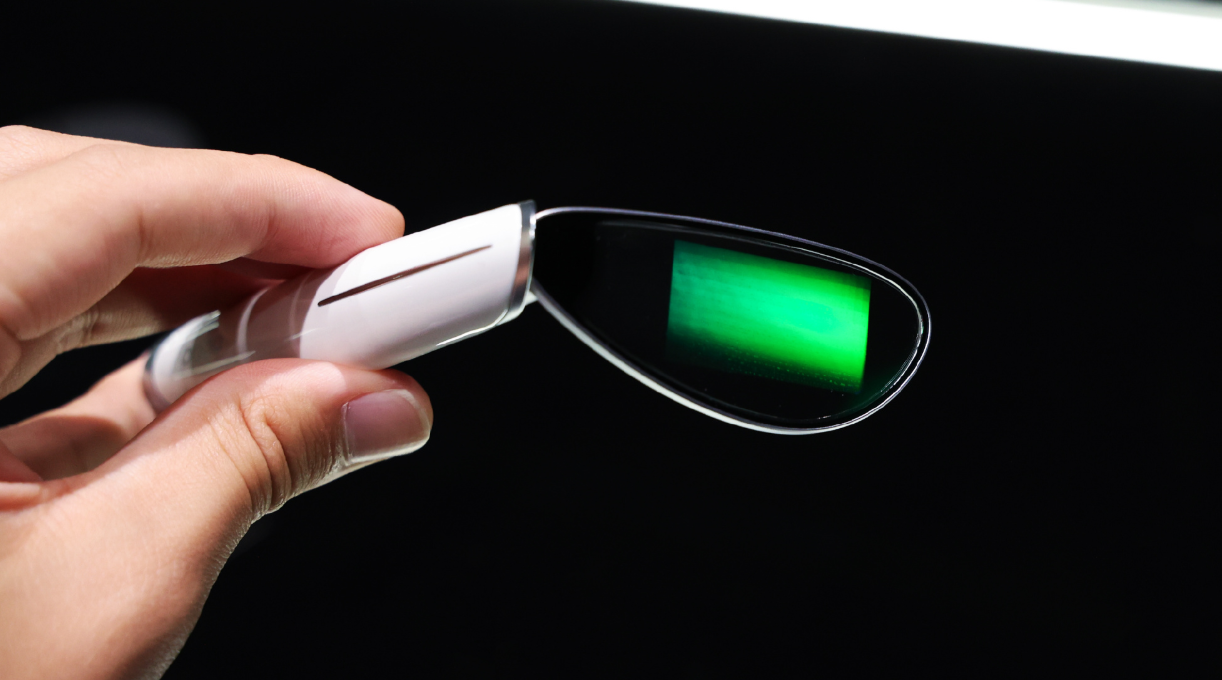 而在如此轻薄的镜片厚度下,却拥有平均1400尼特的入眼亮度输出,为我们带来了更为明亮、清晰的视觉体验,即便是身处于户外强光的环境下,也不用担心看不清楚屏幕上的内容,这得益于OPPO Air Glass搭载的自主研发的Spark微型光机自主定制了规格参数,并进行了全新的光学设计与结构设计,以及定制的衍射光波导技术来实现的。