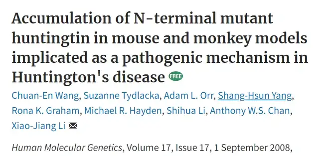 指针回拨到 1996 年,李晓江开始在埃默里大学利用小鼠模型研究神经退行性疾病。当时,他们发现利用小鼠模型做研究存在一个明显的缺陷 —— 即小鼠模型难以模拟病人脑组织中非常明显的神经细胞死亡。