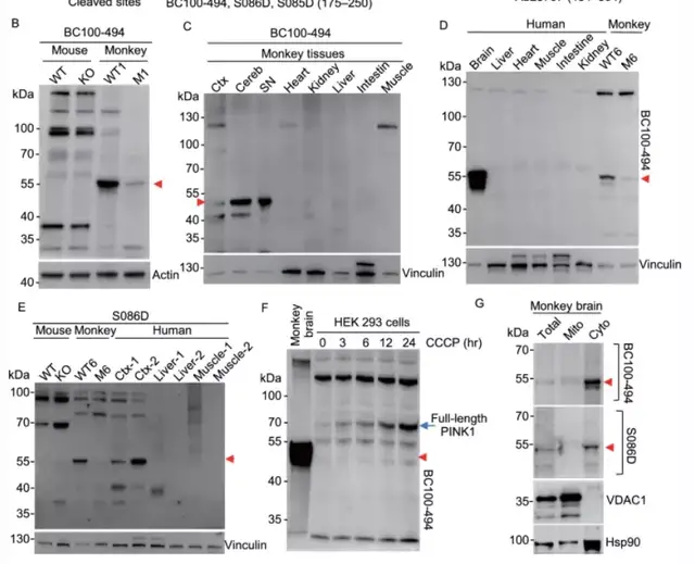 图 | PINK1 蛋白在小鼠、猴子和人体中的表达水平(来源:相关论文)